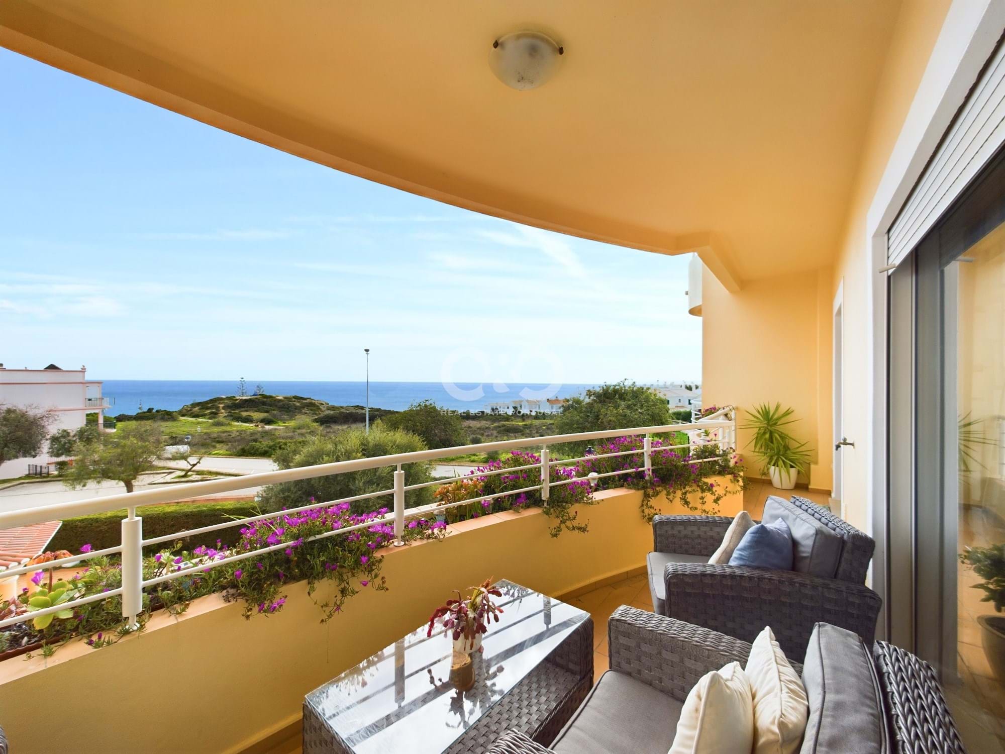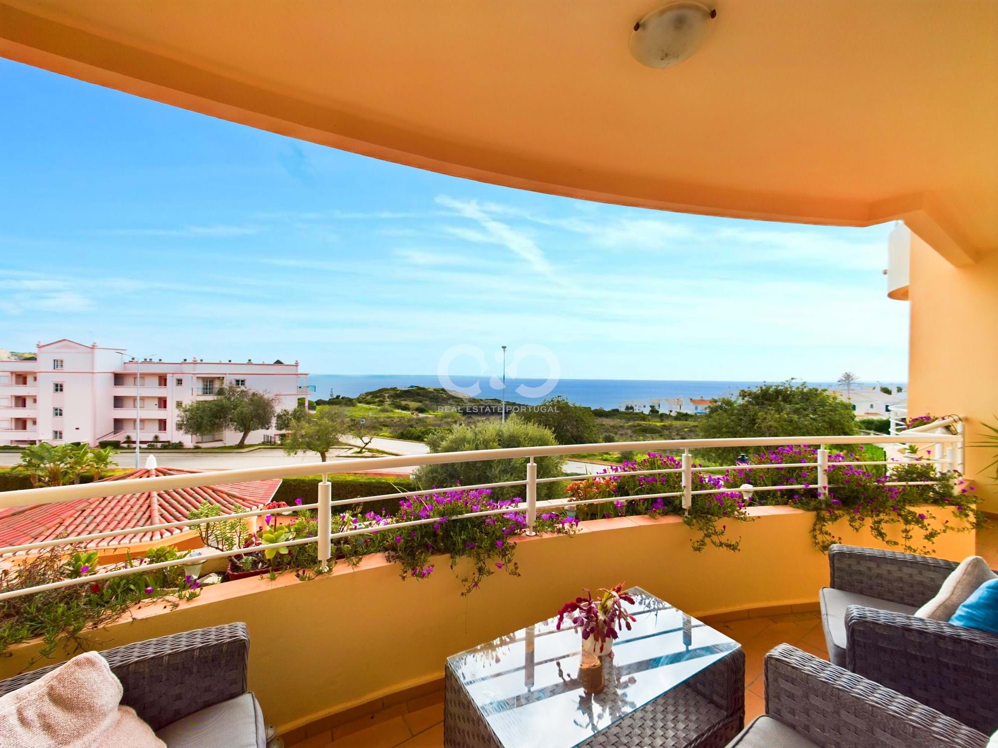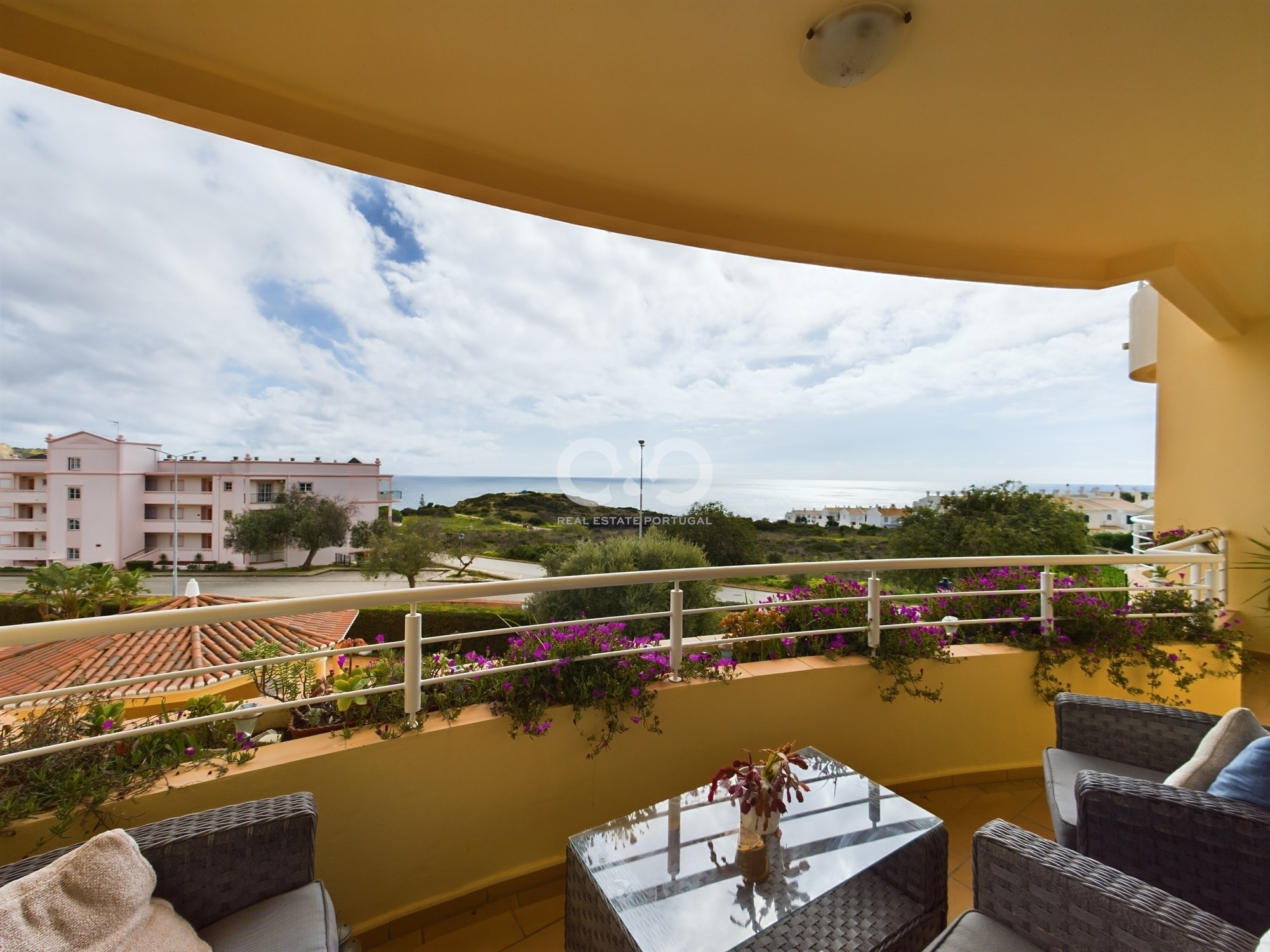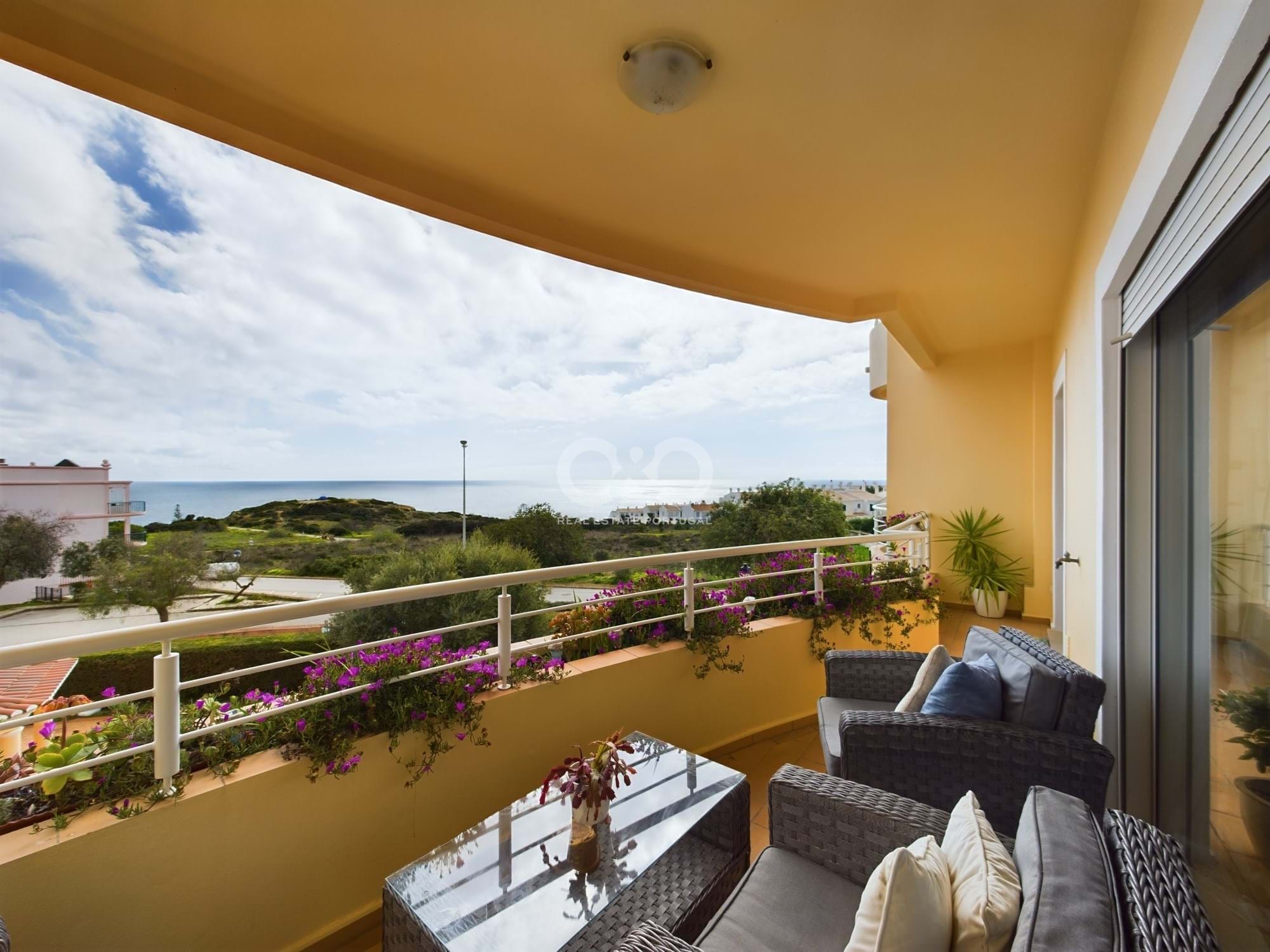 Superbly sited modern apartment with spectacular ocean views over the Atlantic, complete with internal garage space and storage and a communal pool. The apartment is situated in a prime position and is just a short walk to the centre of the old fishing village of Praia da Luz with its array of shops and abundance of restaurants , and with its pedestrianised walkway which overlooks the wonderful sandy beach and the famous black rock of Luz.