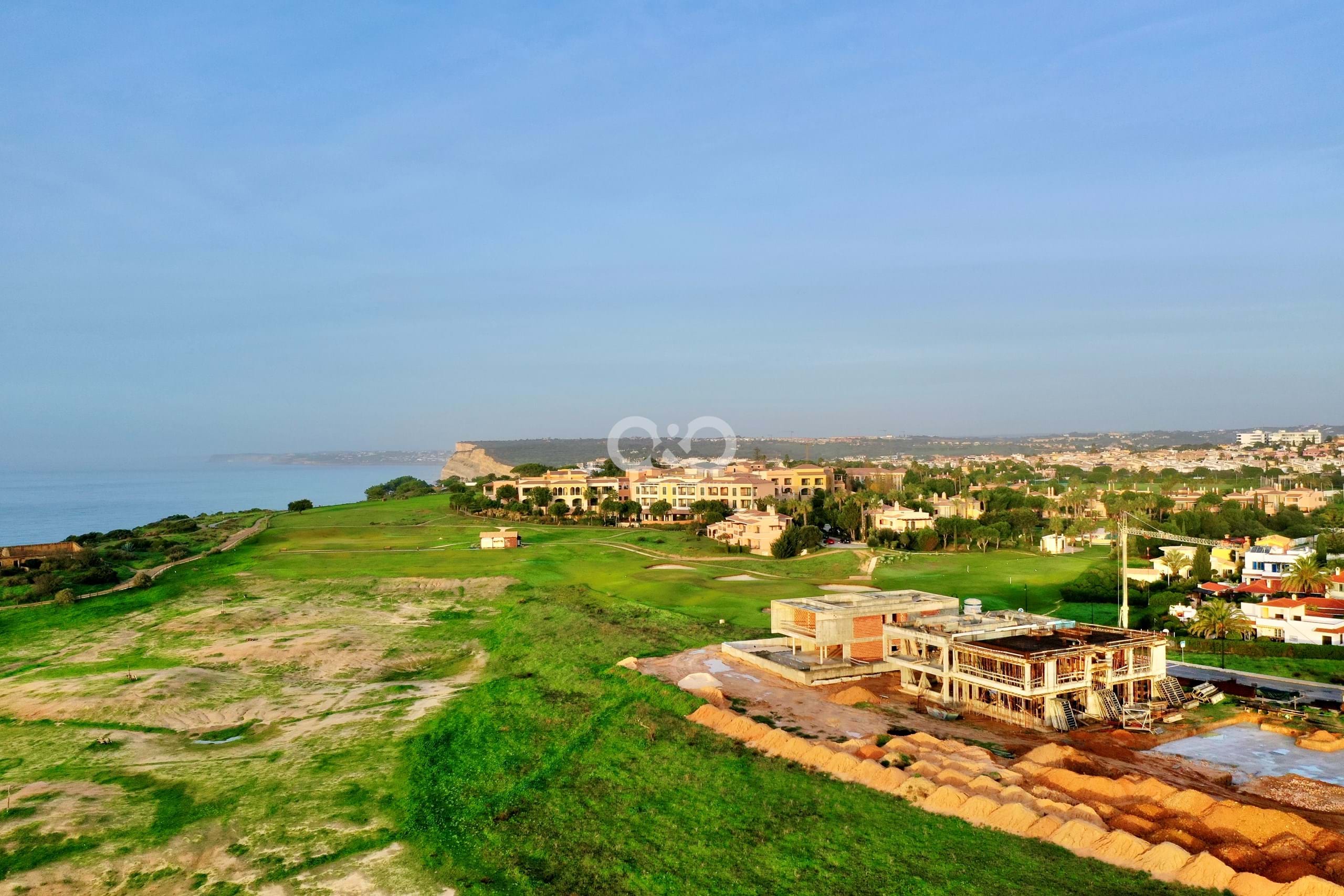 Sea front contemporary villa with swimming pool under construction.